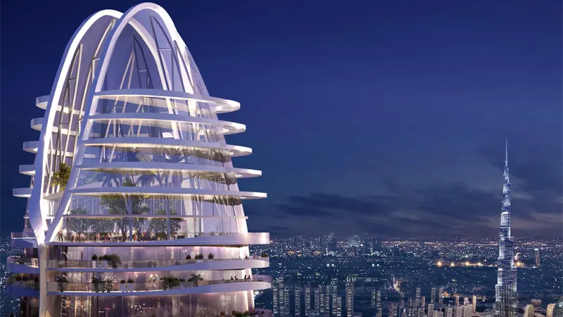 The luxury class tower goes beyond expectations with a curated collection of amenities. From relaxation pods dedicated to star-gazing to a spa, beauty bar, and temperature-controlled flotation pods, it promises a life well-lived. Whether lounging on solar-powered sunbeds or enjoying post-workout bliss in the pool, serenity and splendor await at every turn.
