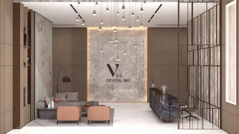 Vue by Crystal Bay redefines urban living at Jumeirah Village Circle (JVC), Dubai with its blend of sophisticated design and modern luxury studio to 3 bedroom apartments. The premium grade architectural marvel characterized by an industrial grid-style exterior, it stands as a beacon of elegance and innovation. The structure, supported by a robust steel framework, exudes a tactile smoothness enhanced by the pool element, creating an inviting atmosphere.