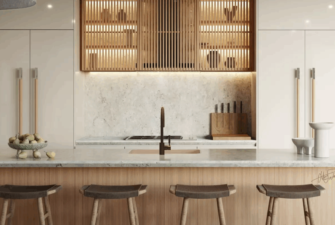 The interiors at Nobu Residences are a testament to the timeless allure of natural textures and colours. You’ll find a harmonious blend of wood, stone, and glass, interspersed with contemporary materials such as leather, linen, and metal. This delicate balance results in spaces that exude sophistication and warmth, further enhanced by the use of subtle, strategic lighting.