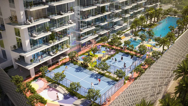 The Sky Bridge Infinity Pool measuring an astounding 35 metres offers breathtaking views of the skylines. While the 45-metre beach edge pool provides a serene escape, where residents can unwind and soak up in the sun. For those who prefer outdoor lifestyle can enjoy variety of options including sports facilities such as padel tennis court, basketball court, and even a skate park.