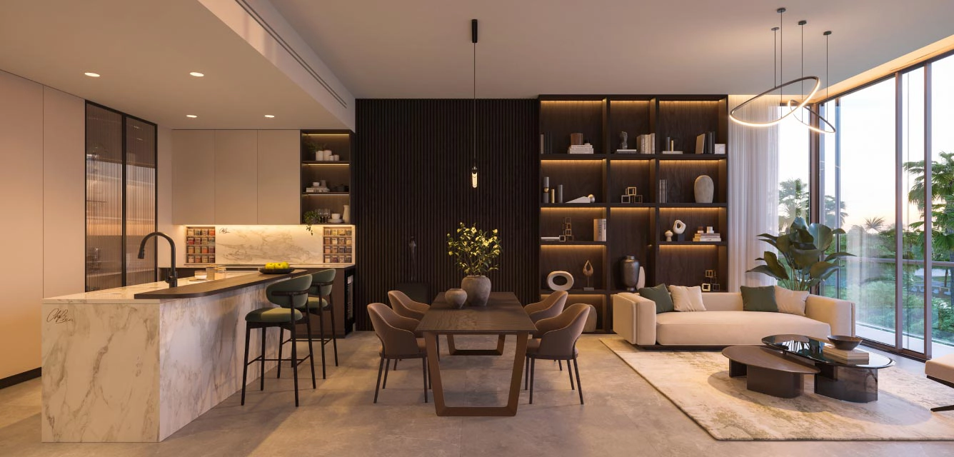 The significant features of Woods Bagot, Mustard & Linen all together create an enthralling concept of home interiors. The opulent architectural craftsmanship and meticulously settled windows & balconies establish a thoughtfully designed enthralling and finest façade. This avant-grade development aims to hold the benchmark of Estidama 3 Pearl rating, Fitwel, & LEED Gold Certification. The cutting-edge features of sustainable features, a functional design, and water, waste & energy efficient options are elements that foster a sustainable, thriving, and healthy lifestyle.