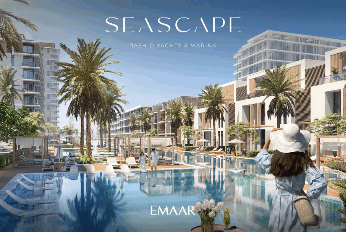 Seascape, launched in Q4 2022, is a prime residential development by Emaar Properties in the vibrant area of Rashid Yachts & Marina. The project will consist of 4 buildings, ranging from 6 to 18 floors, and offers a selection of meticulously designed 1–3 bedroom apartments. There will also be 20 generously-sized 2-storey 3-bedroom townhouses available for purchase. In total, there are 391 residential units in the upcoming complex.